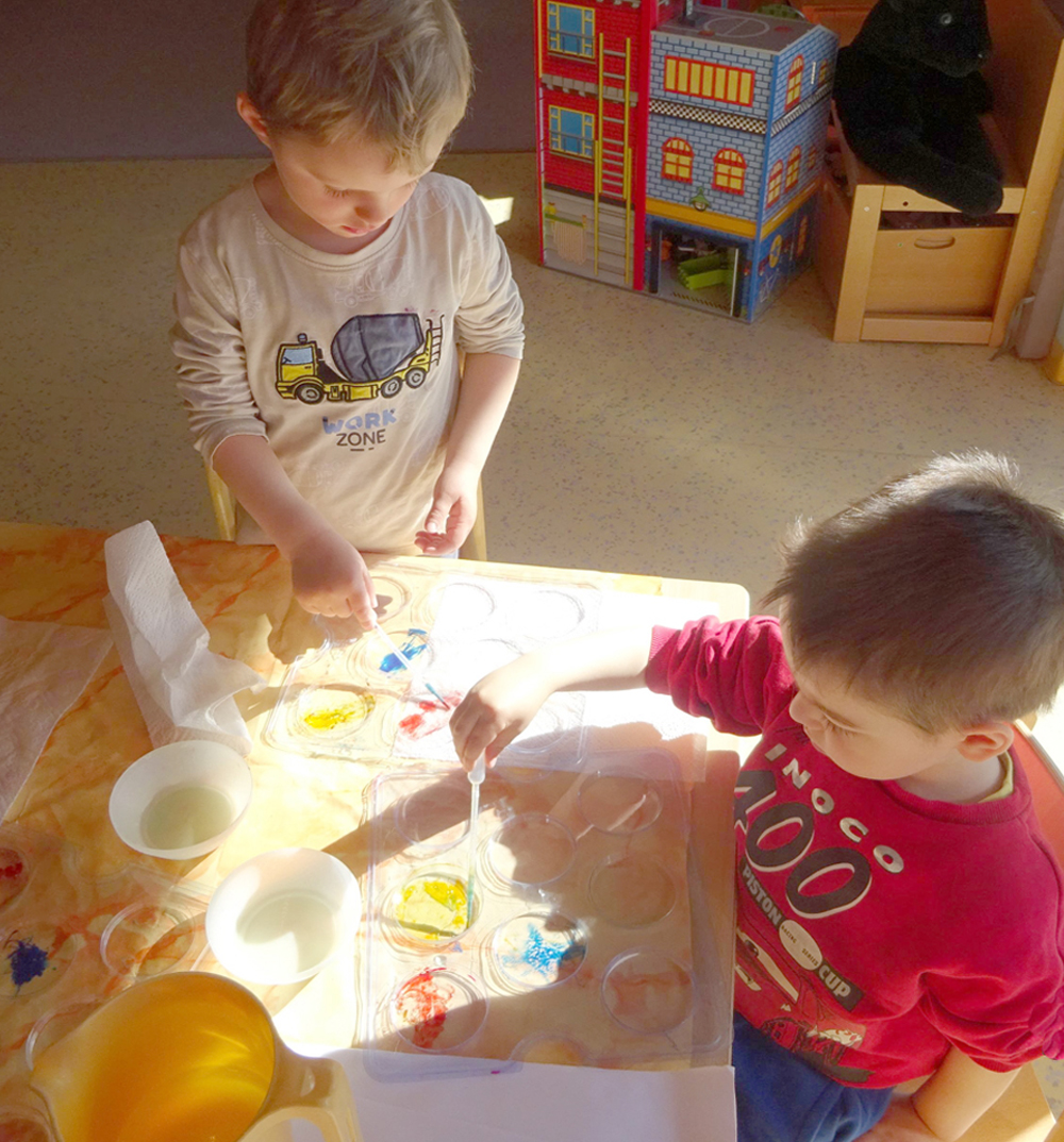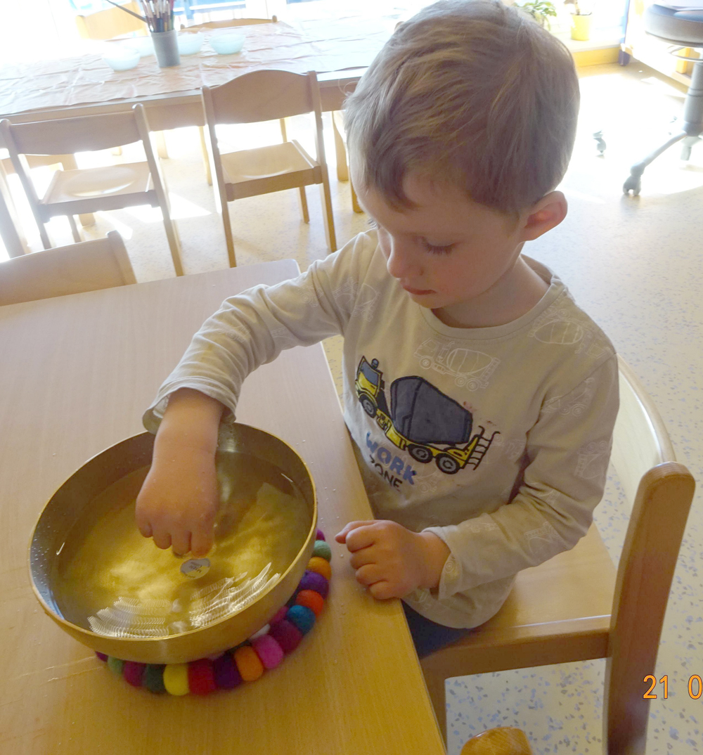 Was passiert, wenn wir Zauberfarbe in das Wasser schütten? Wie kommen die Blubberblasen in das Wasser? Und was passiert mit dem Wasser, wenn es in Schwingung kommt? All das haben wir ausprobiert und waren von den Ergebnissen sehr fasziniert.